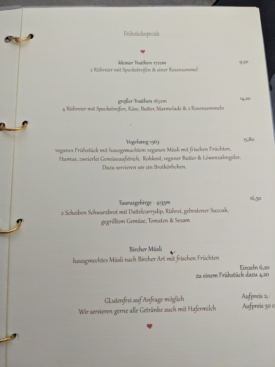 - Indulge in their “Für den grossen Hunger”, featuring housemade Kässpätzle topped with mountain cheese and caramelized onions, perfectly paired with a fruity birnen cranberry chutney - a steal at €9.20.